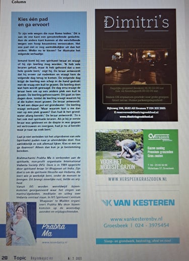 Column over Vedanta in herfsteditie 2025 van het regiomagazine Topic
