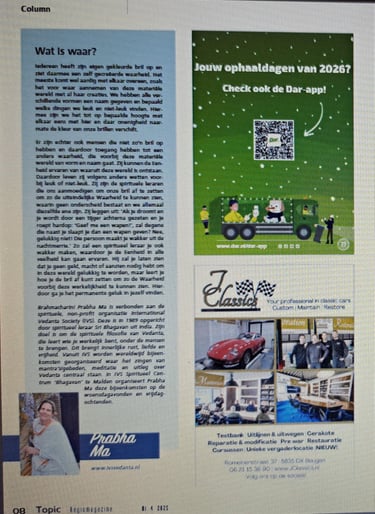 Elke 3 maanden schrijft Satya Prana Mata een column voor Topic, het regiomagazine van Heumen en Mook-Middelaar. Bij deze het column uit de wintereditie 2025: